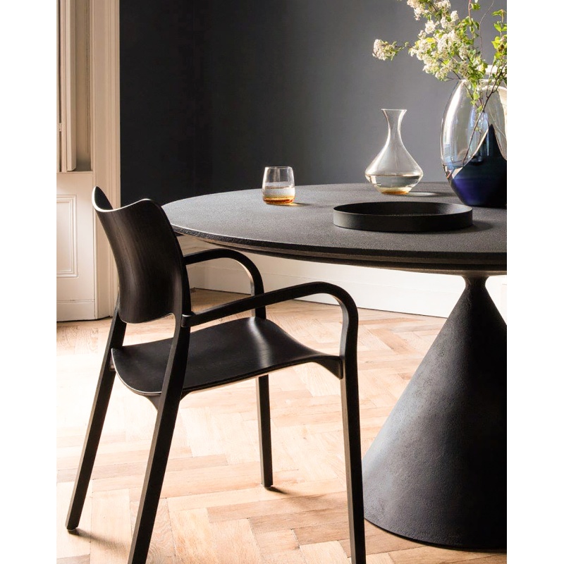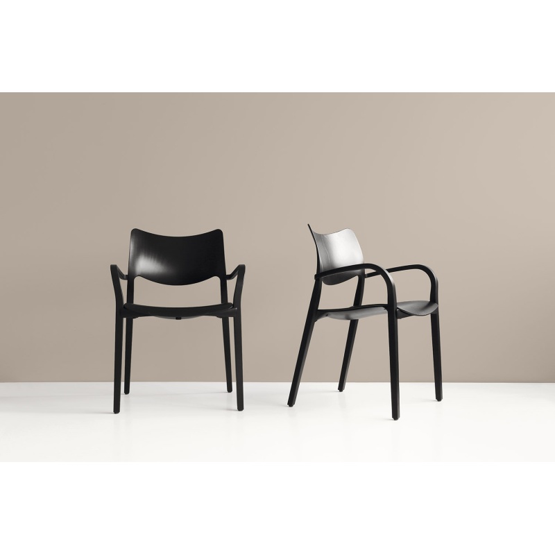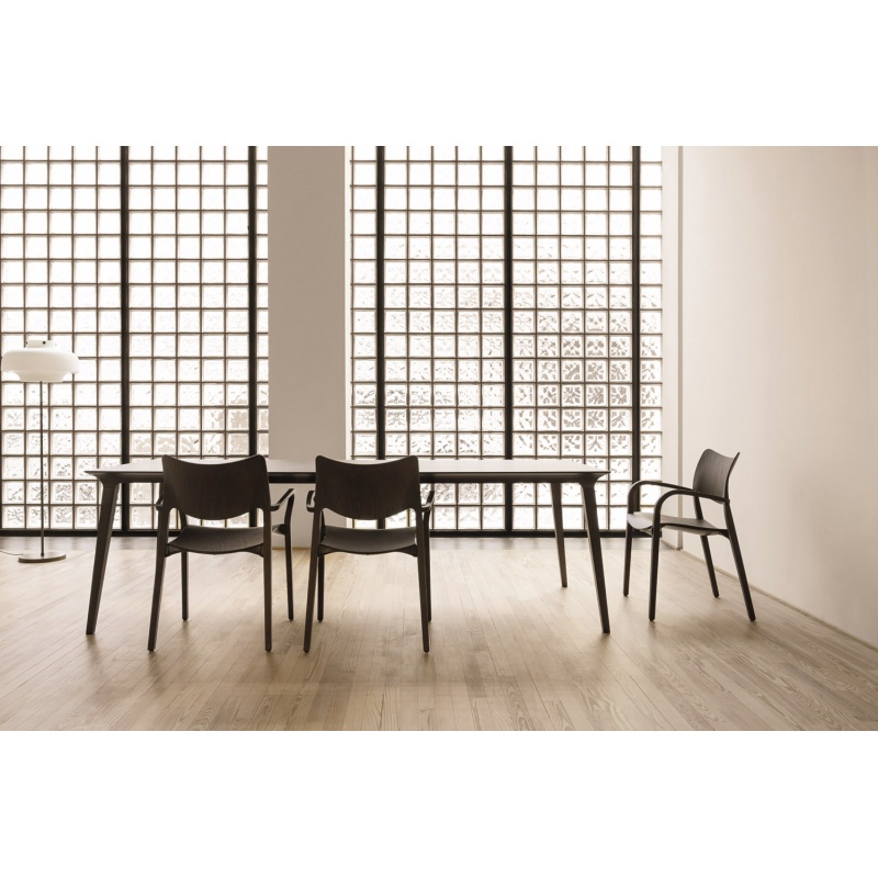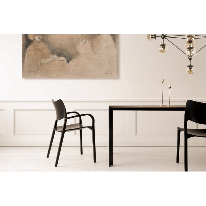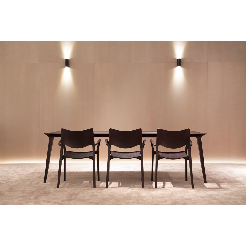 Vineerist iste ja seljatugi sulanduvad puidust jalgadega, luues voolava vormi. Istme all tugevdab konstruktsiooni esteetiline alumiiniumosa.