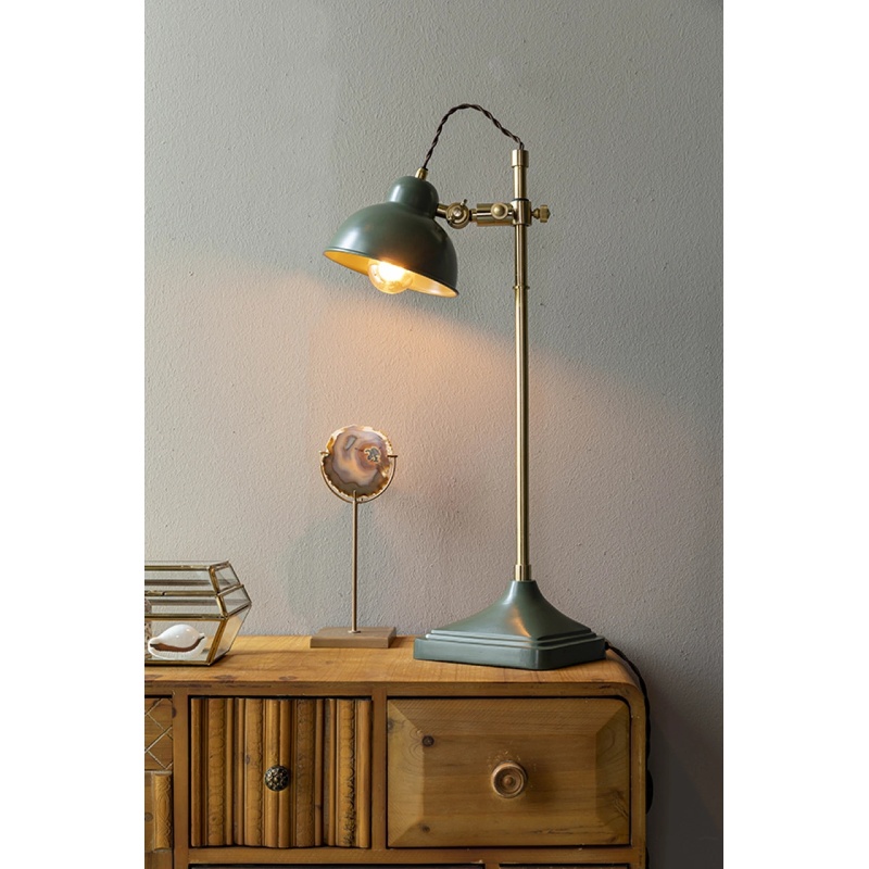 Vintage-hõnguline lauavalgusti Todd on rohelise kupli ja raske jalaalusega, meenutamas meile Suure Gatsby aegu.